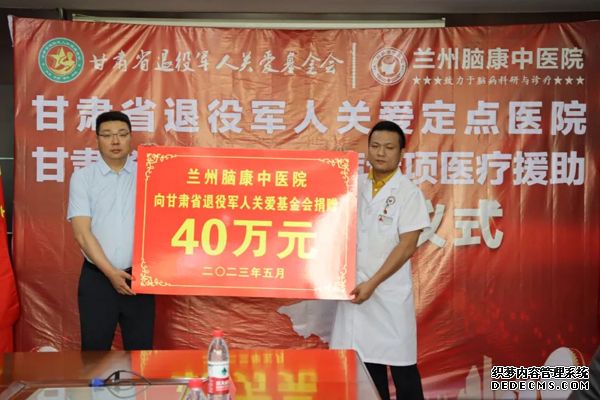 为加强全省退役军人医疗保障工作,兰州脑康中医院向甘肃省退役军人关爱基金会捐赠40万元善款,省退役军人关爱基金会副理事长金长树为医院颁发捐赠证书。